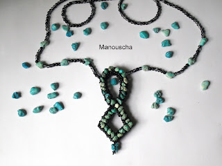 noch mehr Türkisnuggets integriert in den Anhänger/Kette Gabriela von Marcia DeCoster.Der Türkis wird bei den Indianern auch Himmelsstein genannt, und gibt Kraft.